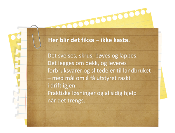 Verkstedet er forhandler av BKT og Michelin dekk for traktor, hengere og landbruksredskaper. Få utført montering, verkstedet har egen dekkmaskin. Her skaffer du også deler og redskap for Orkel, Zetor, Kramp og Lilleseth. Ta kontakt for leveringstid og priser.
